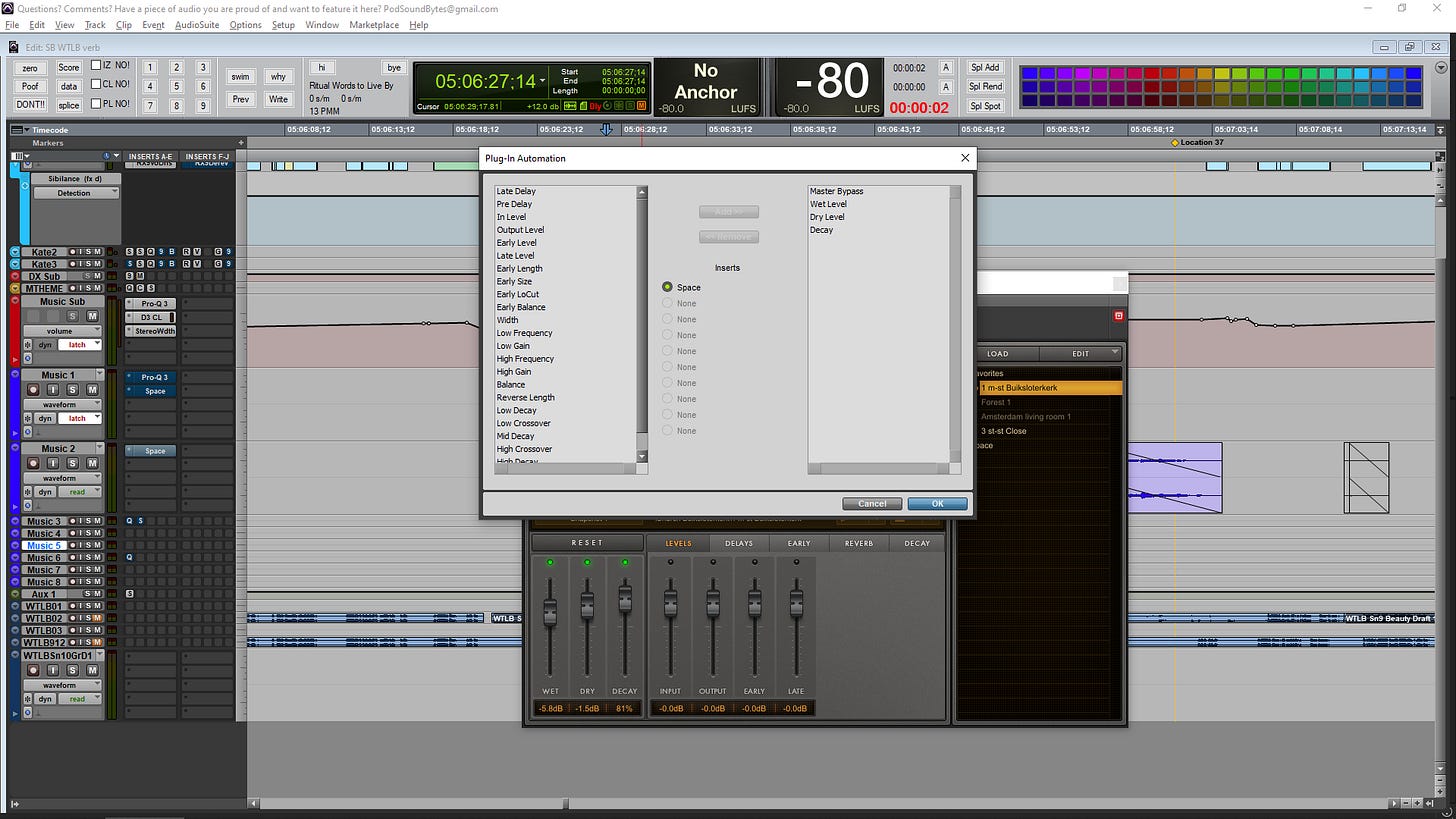 Before getting into the reverb effect, I also wanted to touch on dialogue pacing. I’ve learned a lot about pacing from these productions, and they have given me the courage to let other productions breathe more. We live in a world where everything is punchy and snappy, but I posit that there are people out there that want material that doesn’t treat the listener like a competitive eater at an all-you-can-eat media buffet. Everything I work on outside of Ritual is generally snappy and always moving but this is the type of show that actually requires dialogue that breathes.